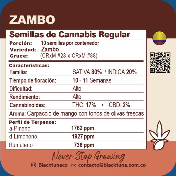 Desde los lugares más biodiversos del planeta llega Zambo con todos sus sabores y matices exóticos que provienen de nuestras hermosas y complejas selvas colombianas. Black Tuna Seeds tiene el orgullo de presentar una de las variedades más resistentes y productivas de la nueva Línea Nativa.